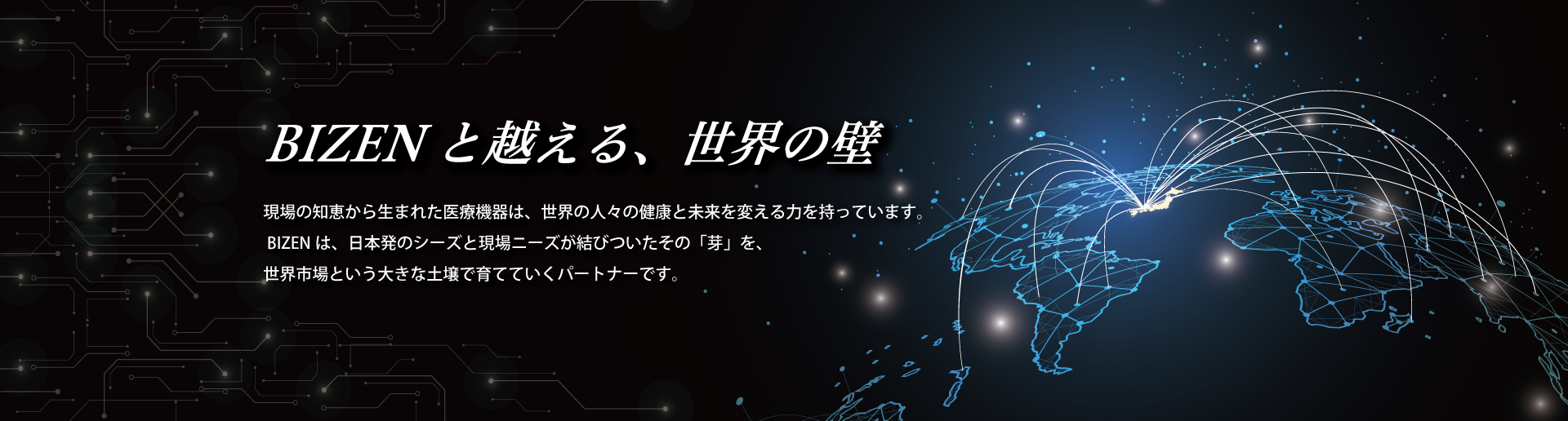 BIZENは、優れた医療機器が世界へ踏み出すその第一歩から、規制・ネットワーク・資金といったひとつひとつの壁を突破するまで、伴走型で支援します。