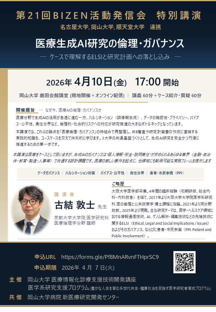 2026/1/22(木) “BIZEN”第20回活動発信会『臨床課題に応える医療機器開発とは ~ ベンチャーが切り拓く産学連携の実際』の開催お知らせ